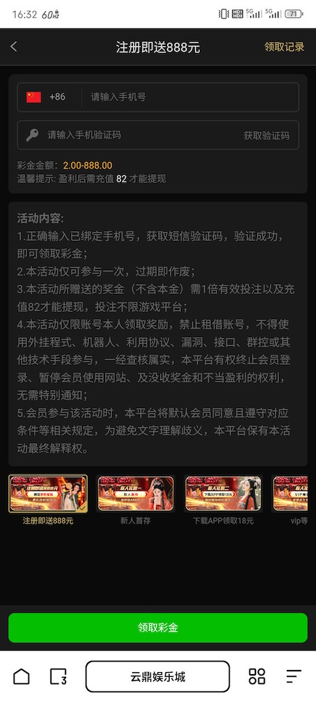 领取方式:注册绑卡绑定手机号优惠中心新人优惠里面自助验证手机号